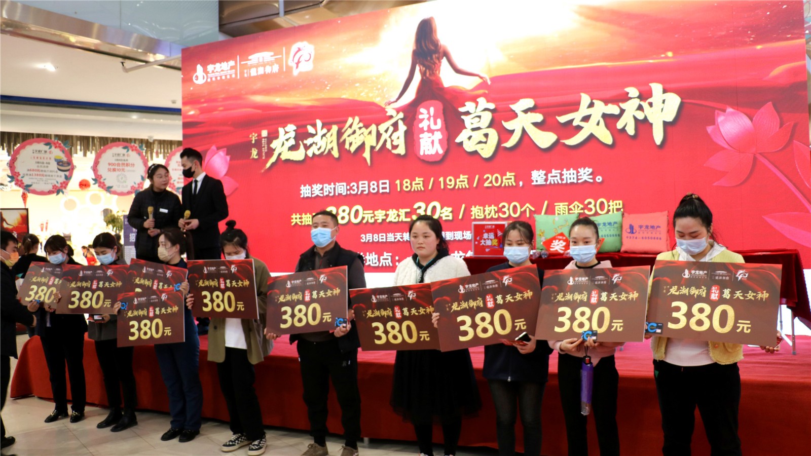 宇龍地產以“迎集團慶、慶三八節”——“龍湖御府禮獻葛天女神”抽獎為活動,以“宇龍廣場城市展廳”為宣傳點,現場推介龍湖御府的項目特點和區位優勢等,進一步提升龍湖御府項目的知名度和美譽度。