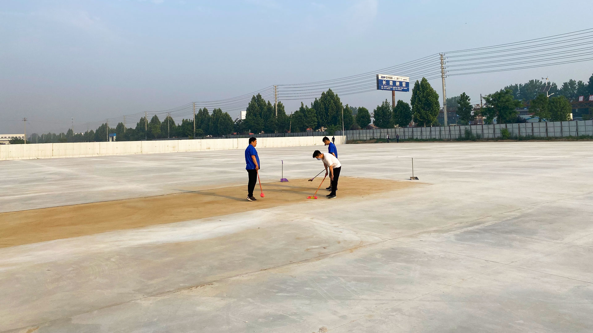 不等領導安排指揮,所有人積極揮動起自己手中的勞動工具,大家分工明確,對場地進行了認真細致的清掃。盡管烈日當空,大家的勞動熱情依舊不減,沒有人因為汗水濕透了衣衫就停下腳步,經過大約兩個小時的辛苦勞動,二手車場地清理完成,劃線工作也順利進行,雖然所有人都滿臉汗水,一身的灰塵,但是劃線工作的完成,預示著宇龍汽車產業園又一項目——二手車交易市場的完美開幕,讓大家對汽車產業園的未來充滿了期望。