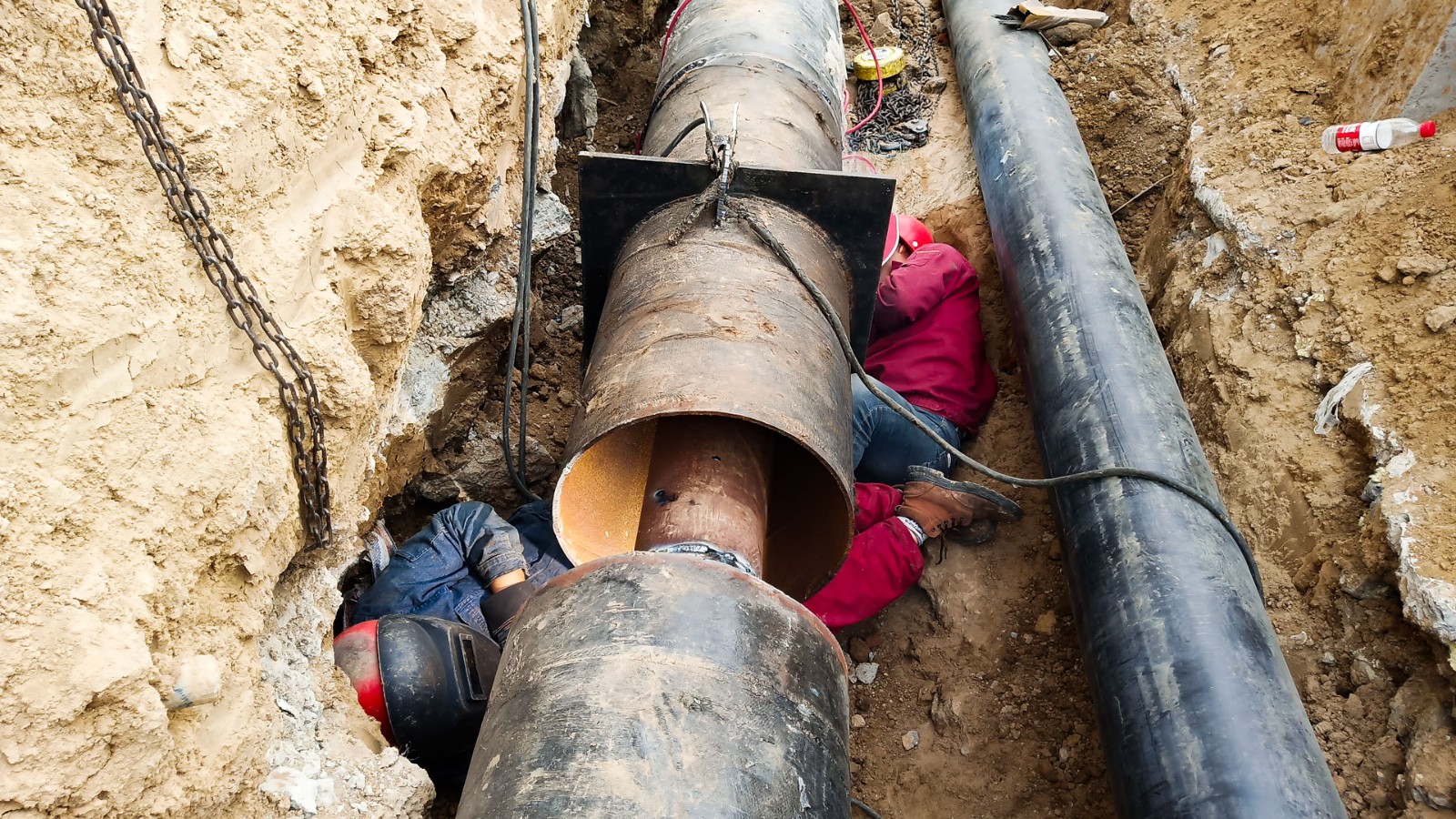 10月25日,東區楓湖壹號小區熱網施工現場,熱力公司施工人員正在對最后一處固定樁進行焊接。