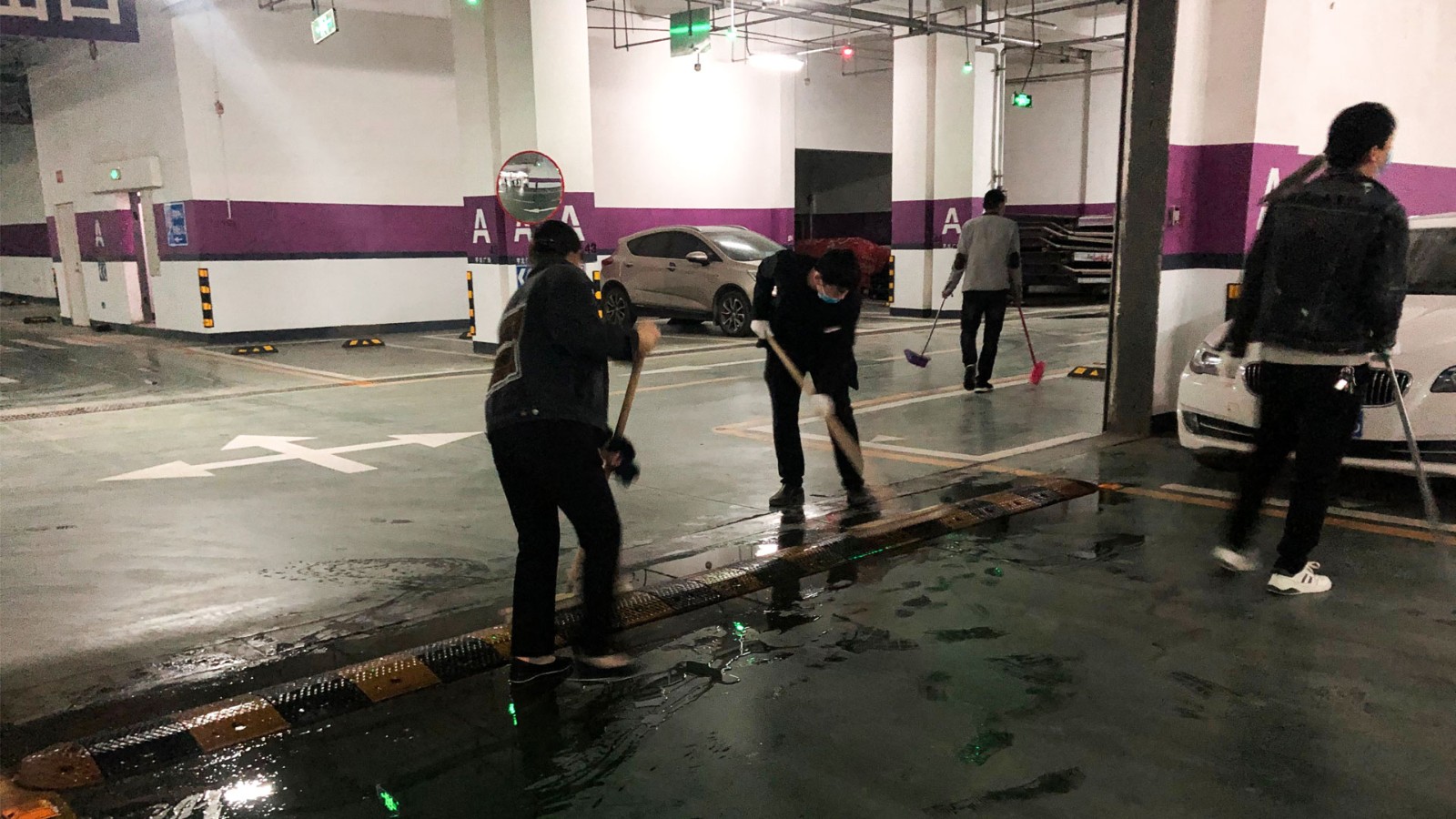 所有修補工作完成后,3月30日早上7點20,物業部全體員工將負二停車場主通道、墻面死角、地面減速帶、反光條、滅火器等細節衛生進行了清理。經過大家連續奮戰,地下車庫的面貌煥然一新。