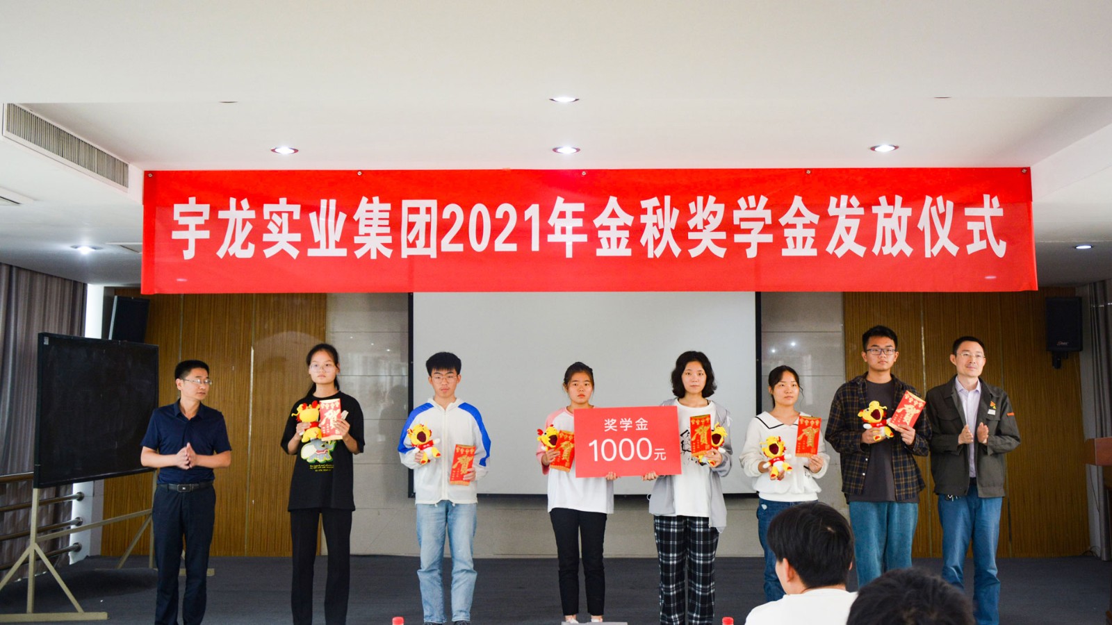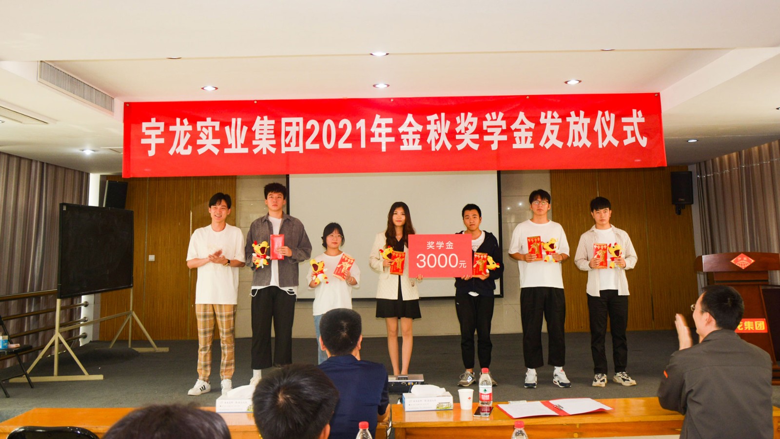 8月31日上午,宇龍集團2021年金秋獎學金發放儀式在公司總部舉行。集團公司總經理岳鵬濤、副總經理祁雙印、戴小偉出席儀式,各單位榮獲本年度宇龍獎學金的優秀學子們參加了儀式,同時邀請了同學們的家長來一起見證孩子們的榮光。