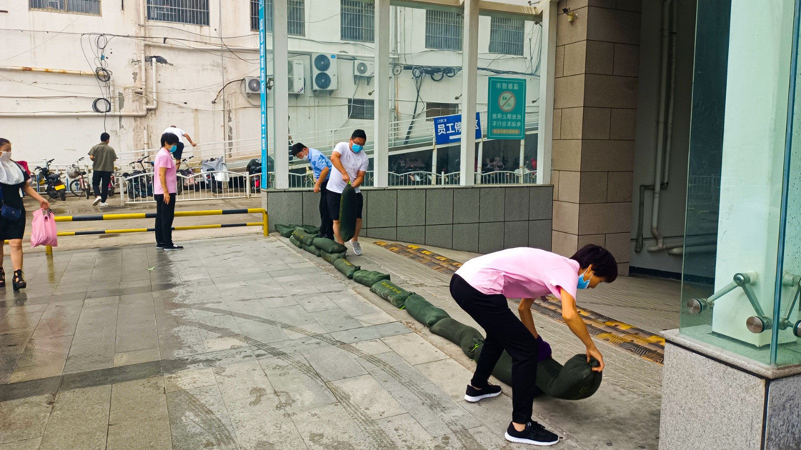防汛指揮小組由商貿公司執行董事胡總及各部門主管人員共15人組成,防汛小組切實落實防汛工作責任制,做到責任到位、指揮到位,人員到位、物資到位、措施到位。物業部提前準備了沙袋、雨衣、膠鞋、手電筒、指揮棒等防汛物資。為避免造成損失,負二停車場從22日上午禁止進入車輛,原有車輛依次通知車主駛離負二停車場;各進出口提前增設了防汛袋;各車庫出入口、商場大門口、負二停車場及內場安排專人巡查,嚴防雨漏和倒灌等其他緊急情況的發生。